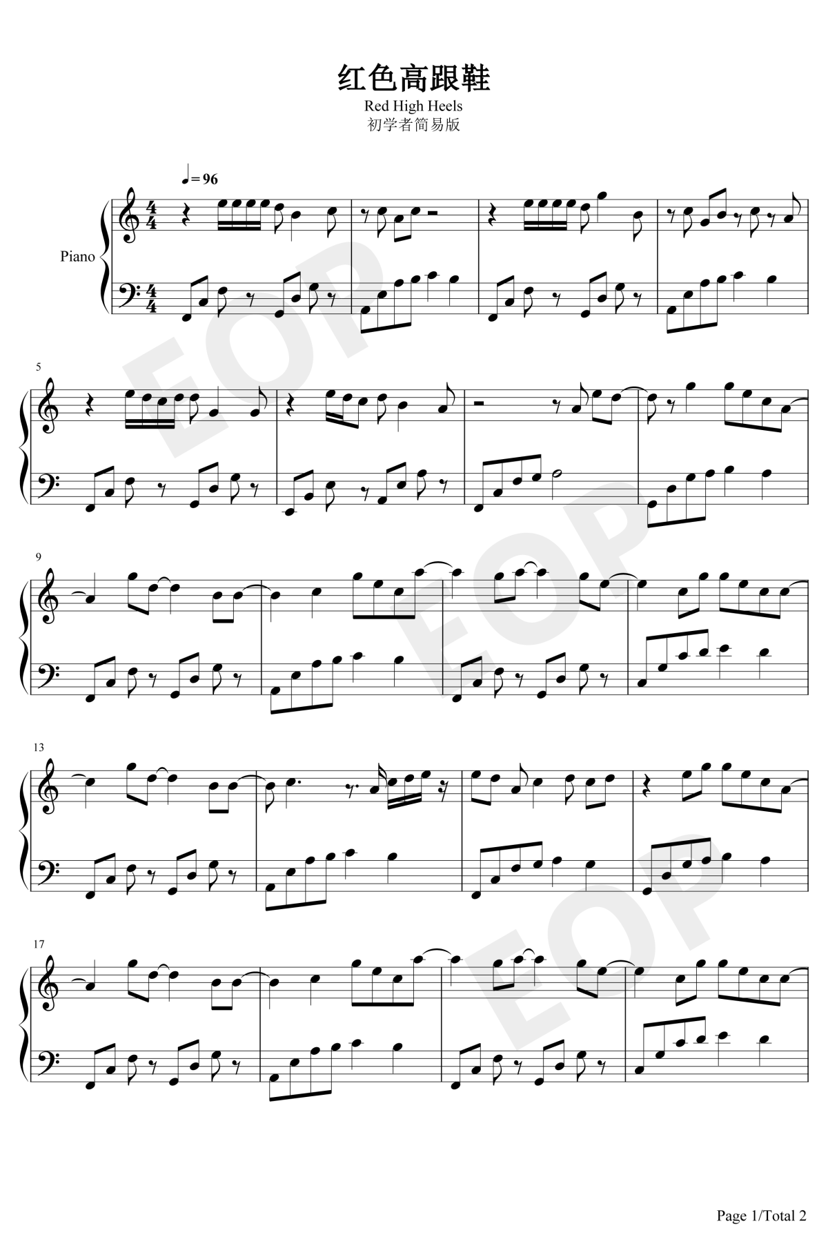 《紅色高跟鞋》簡(jiǎn)單鋼琴譜 重慶滾石琴行