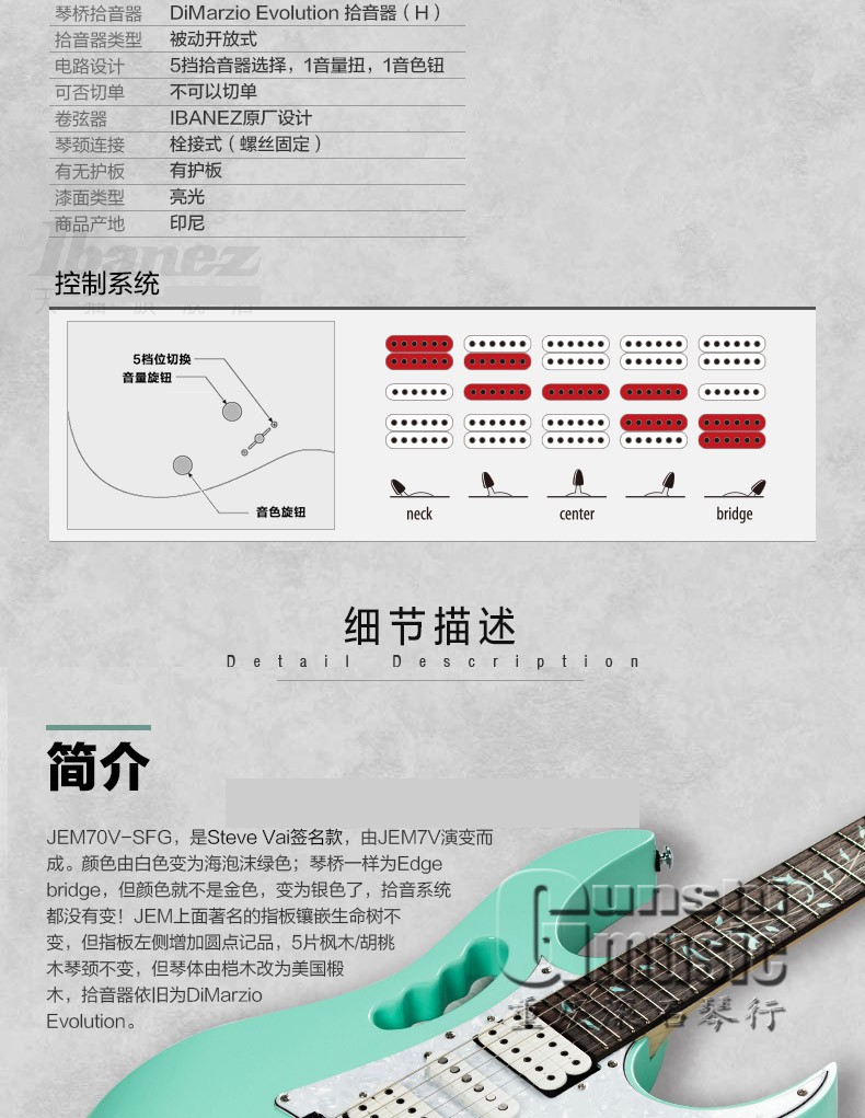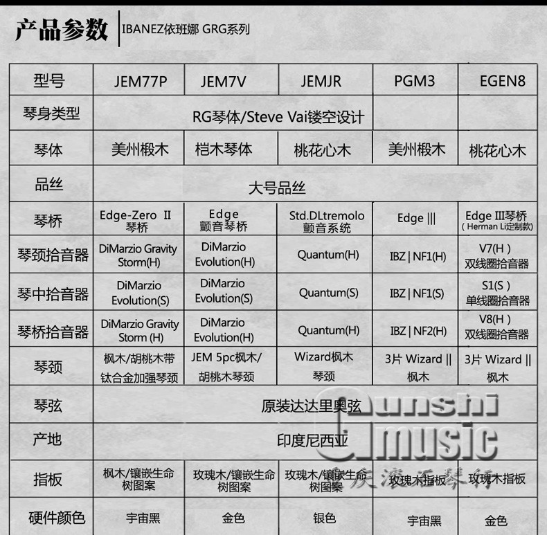 Ibanez依班娜:日本國內的吉他廠商雖有一定數量,但能夠在海外知名并站住腳根的卻不多。在某種意義上說,Ibanez就是這一類的高級品牌。即使是細小的零件也制作得非常精細,直到現在仍是搖滾界吉他手的寵兒。Ibanez吉他的實用性和對各種類型音樂的適用性是它受到歡迎的一大理由。